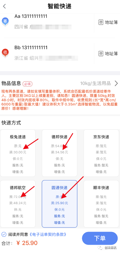 然后,他再把这种优惠渠道,面向个人客户做宣传,让小区的,甚至周边城中村的,都来他这里发快递。