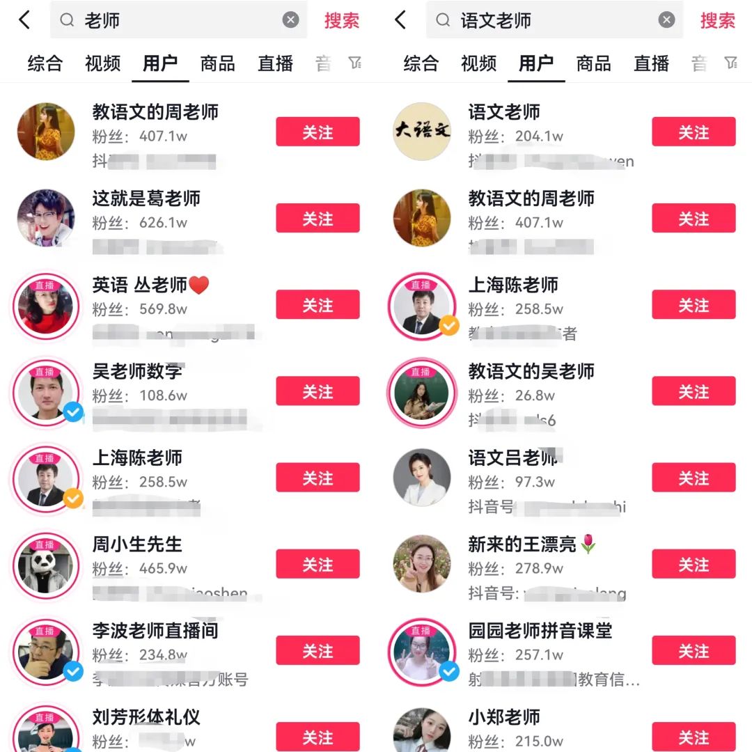 不管做什么类型的账号,都要记住一点,先找到这个行业里成功的账号,1 : 1复制它的玩法,就能提高起号效率,如果想针对小学来做,先找到50个同行账号,花一天时间研究分析他们的操作流程、选题、文案、变现模式等等。
